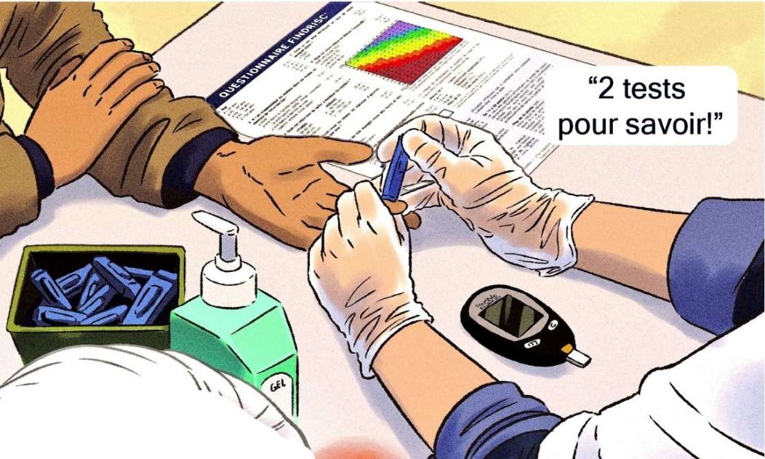 La panoplie du médecin LIDER s’étoffe et met désormais deux outils à sa disposition pour son entretien avec les testés hors limites : une mesure de glycémie capillaire et un calculateur de risques, le FINDRISC.